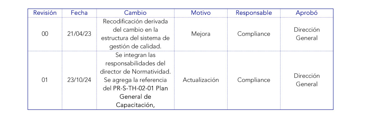 La presente política se encuentra disponible y es comunicada dentro de la organización por medio de intranet, se hace mención en las inducciones de los nuevos ingresos de igual forma se implementa un curso de Protección de Datos Personales en Posesión de los Particulares con los colaboradores con base al documento PR-S-TH-02-01 Plan General de Capacitación, Adiestramiento y Desarrollo de Talento Humano; la revisión a este documento deberá realizarse un periodo no mayor a un año o en caso de presentarse algún cambio relevante que impacte el sistema seguridad de datos personales.